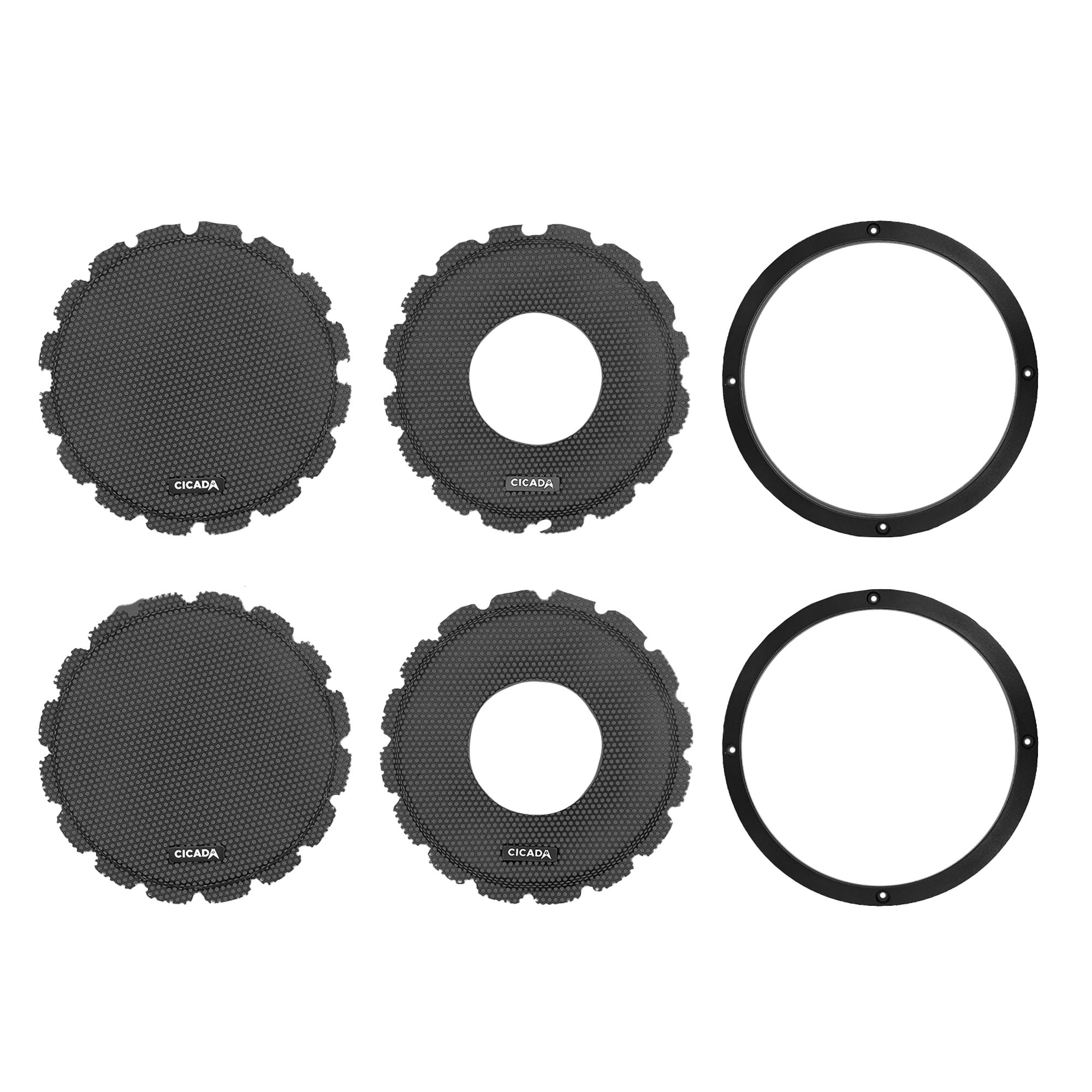 This bundle includes a Cicada Audio CM8.2X - Mid-Bass 8-inch- 2 Ohm, Pair, and a Cicada Audio CBG8FR - 8-inch Flush Style Grill - RAW - Pair.