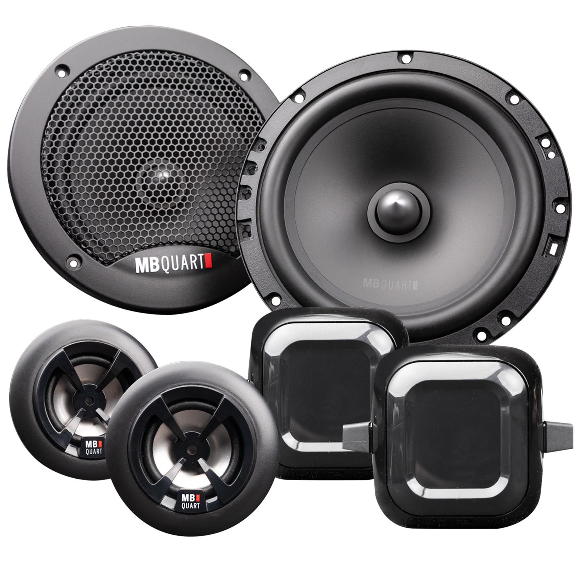 This bundle includes 2x MB Quart DS2-216 - 6.5" Discus Component Car Speaker System With Aluminum Inverted Dome Tweeters And Butyl Rubber Surrounds - 280 Watts Peak, and a MB Quart DK2-116S - 6.5" Discus 2-Way Shallow Coaxial Speakers With Aluminum Inverted Dome Tweeters And Butyl Rubber Surrounds - 240 Watts Peak.