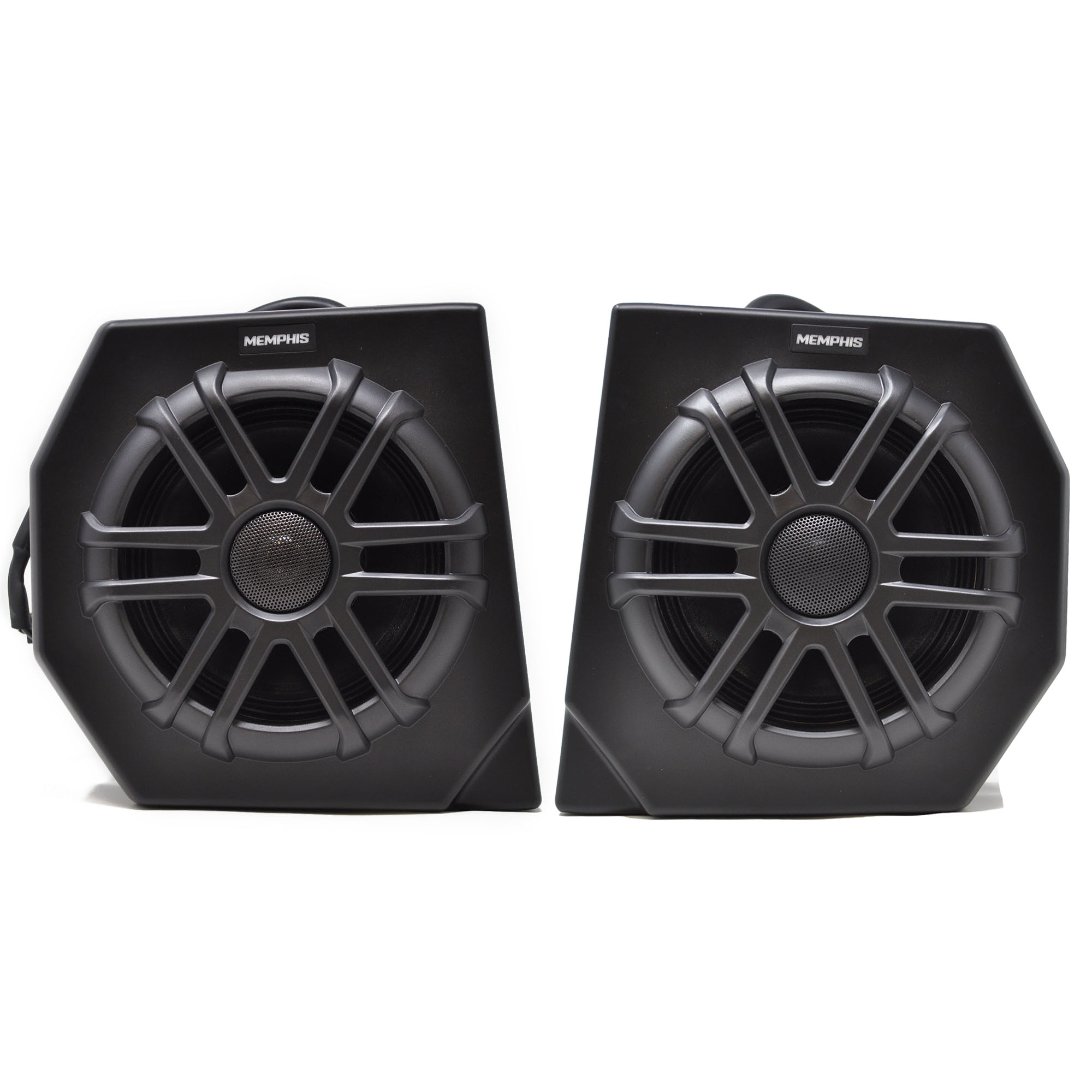 Memphis Audio direct fit OEM speaker pods are designed to fit directly into your vehicle with zero custom fabrication required. Lightweight durable injection molded polypropylene speaker enclusures are tuned for maximum output and feature RGB LED lighting which illuminates the speaker cone, Memphis badge, and provides down lighting making your machine stand out from the crowd. All the components used in this kit are marine grade and designed to withstand water and the elements.