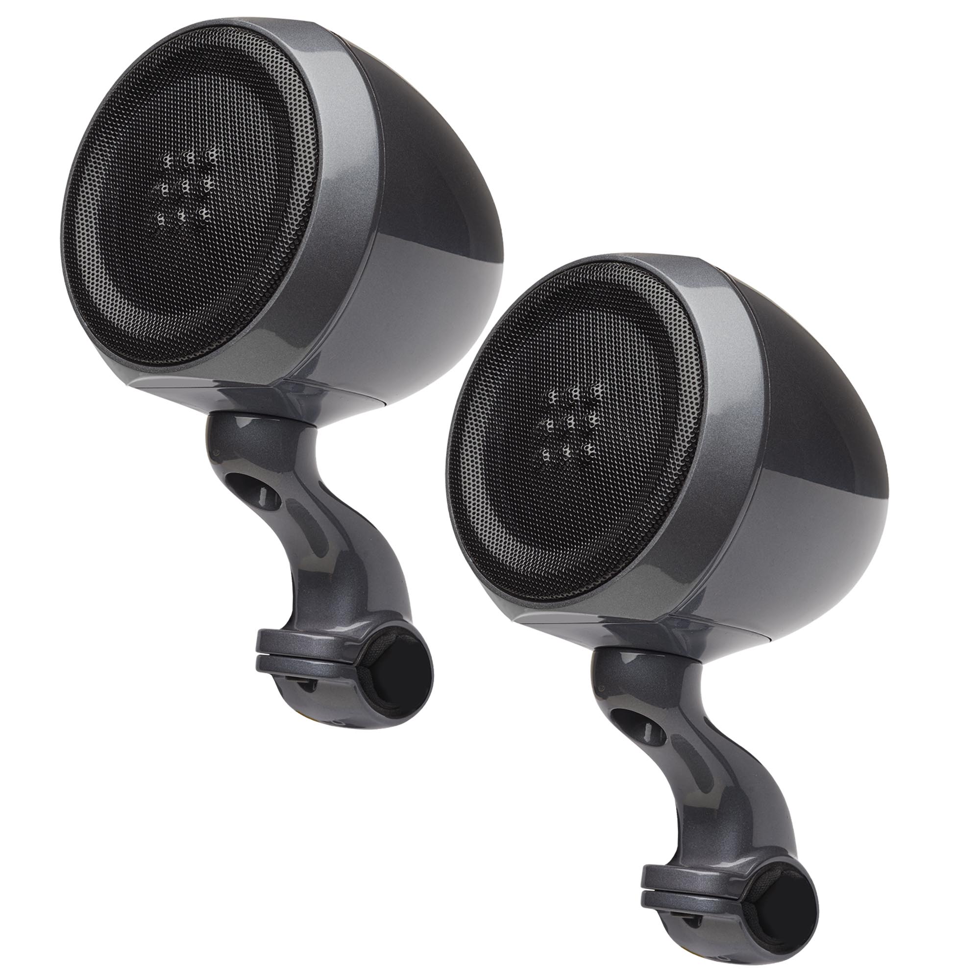 This bundle includes a PowerBass XL-PS200 - 2.75" Amplified Bluetooth Speaker Pods - Pair, and a PowerBass XL-PS2CLAMP - Universal C-Clamp for XL-PS200 Blutooth Pods Fits 1.25" - 2.0" bar.